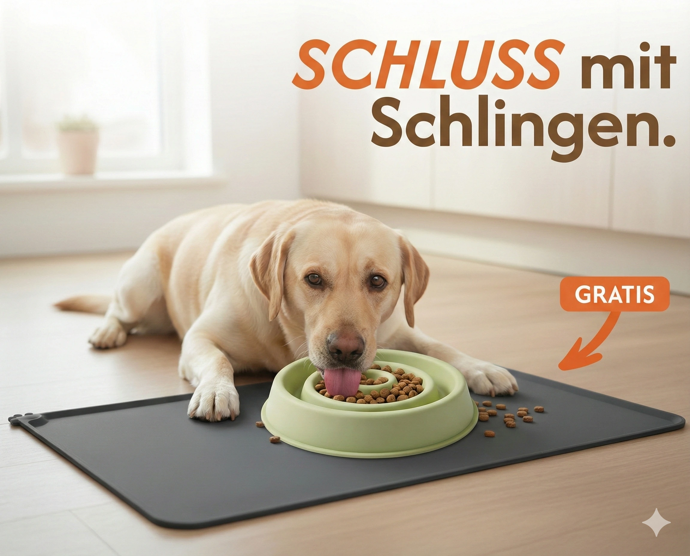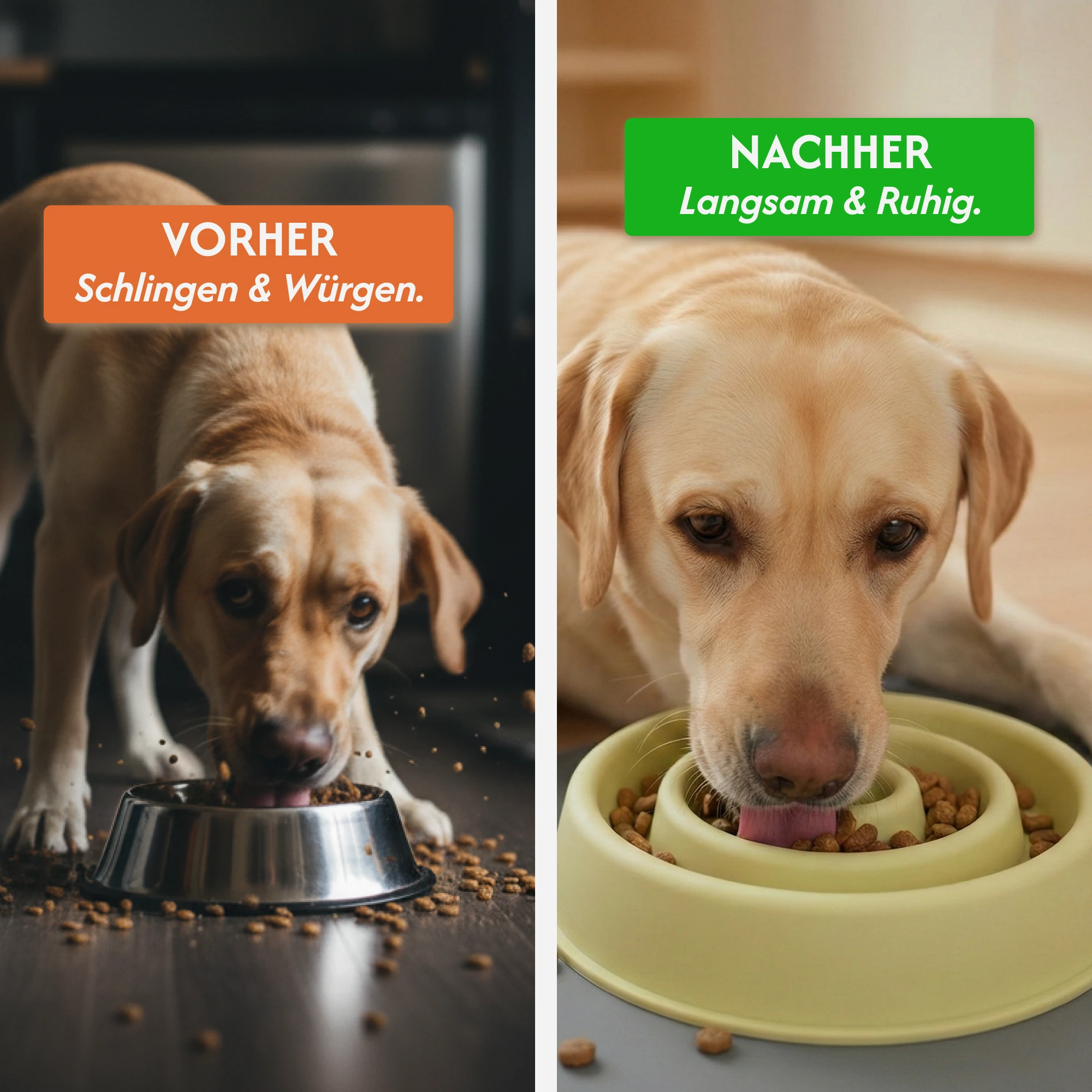 FellStern™ setzt auf Vorsorge statt Notfall. Während Schlingen den Magen überdehnt und Magendrehung riskiert, verwandelt FellStern™ jede Fütterung in aktiven Schutz. Wie? Das Labyrinth-Design verlängert die Fresszeit um bis zu 10x – und reduziert so das Risiko, das die meisten Halter unterschätzen.