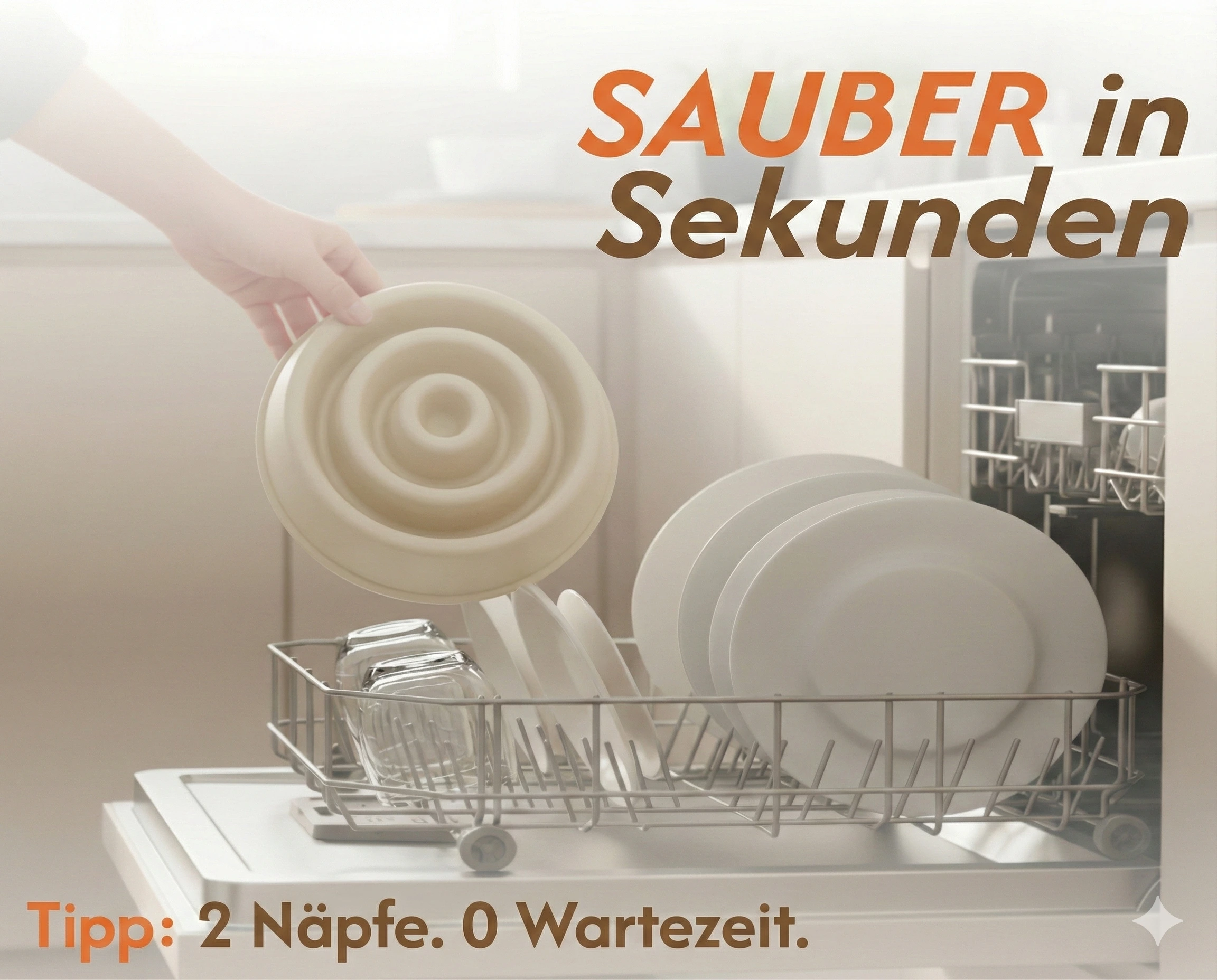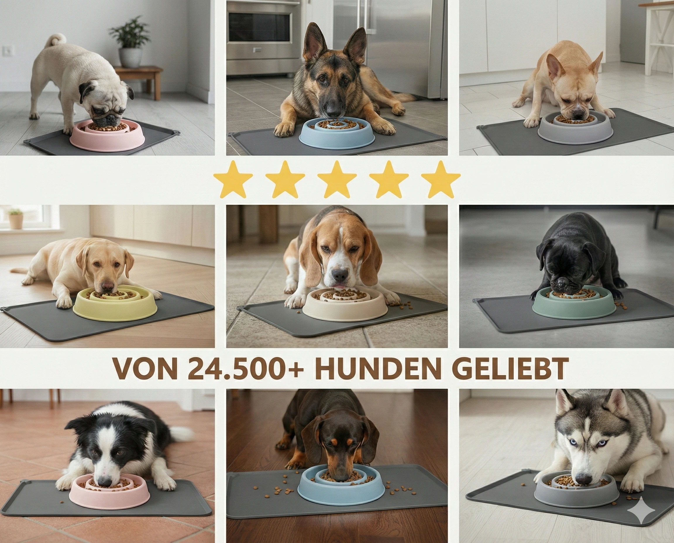 Die meisten Billig-Näpfe haben zu wenig oder falsch platzierte Hindernisse. Das FellStern Labyrinth wurde an verschiedenen Rassen getestet und zwingt selbst die cleversten Schlinger zum Langsam-Fressen.