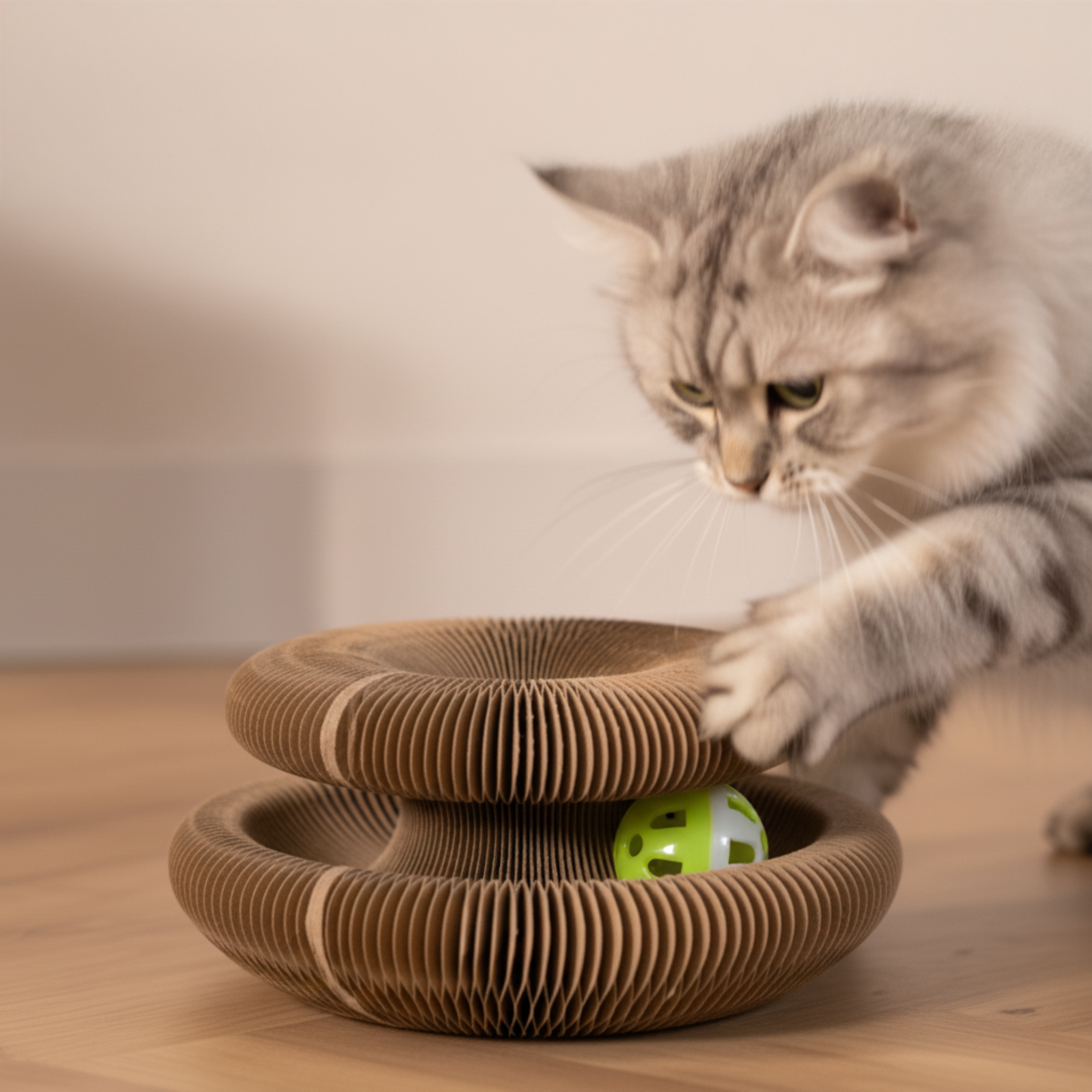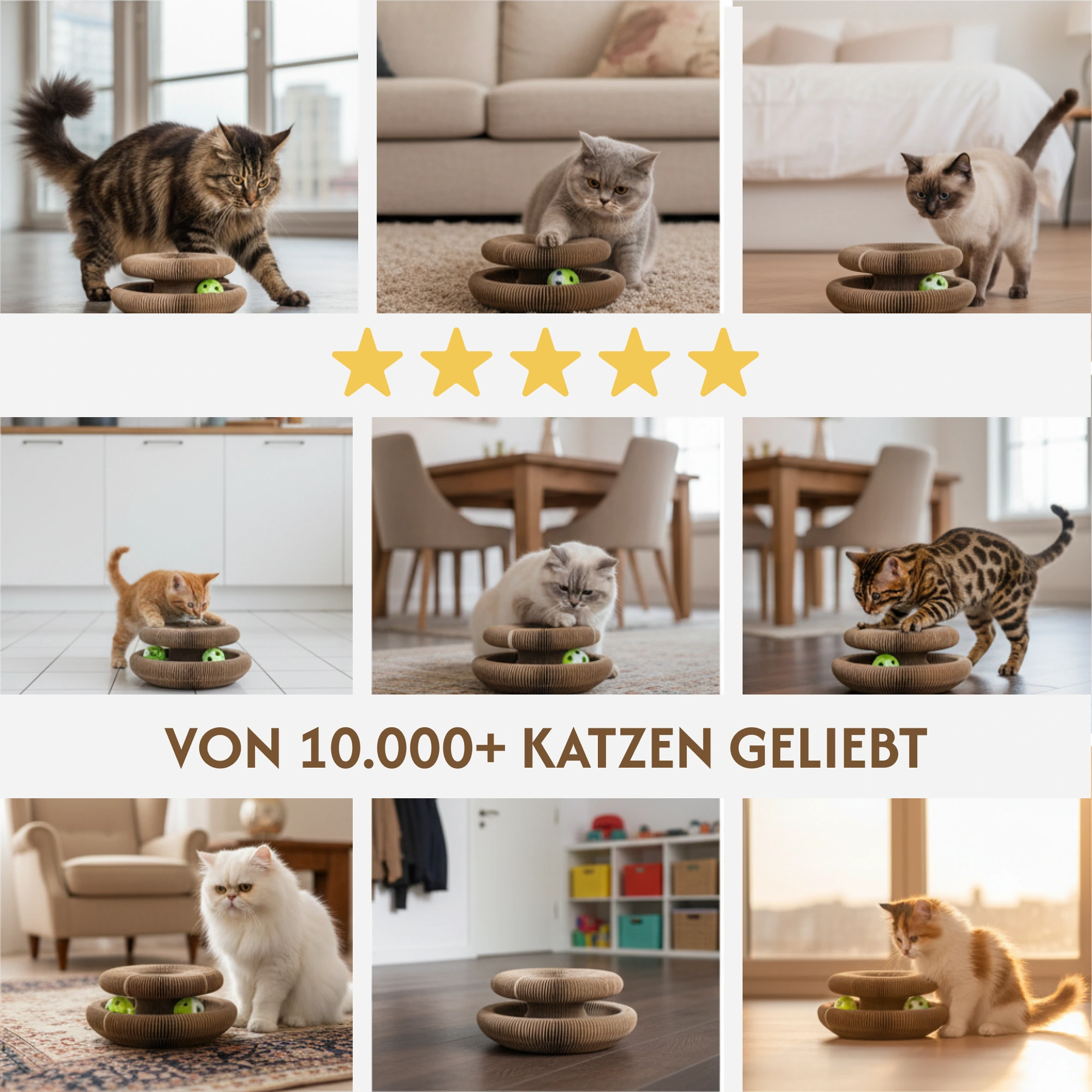 FellStern™ macht keine lauten Motorgeräusche und bewegt sich nur, wenn die Katze selbst anstößt. Dadurch ist es perfekt für ängstliche Katzen, die selbst das Tempo bestimmen.