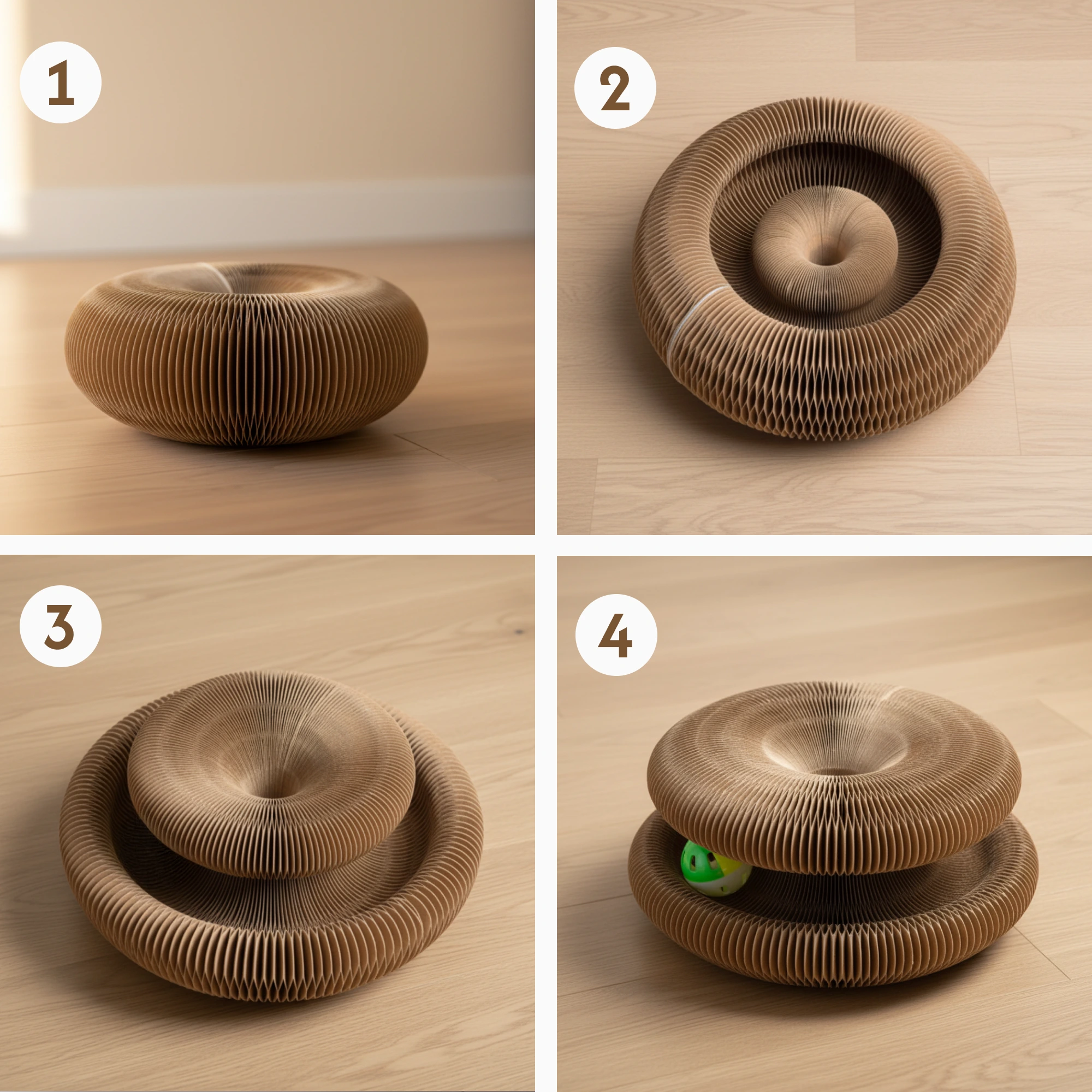 FellStern™ bietet 4 verschiedene Aufbau-Varianten. Von flach bis hoch, von einfach bis komplex. Ihre Katze erlebt jeden Tag einen neuen Jagd-Parcours. Einfach umbauen, und das Interesse ist wieder da. Das Ergebnis? Langanhaltende Beschäftigung statt 2-Minuten-Langeweile.