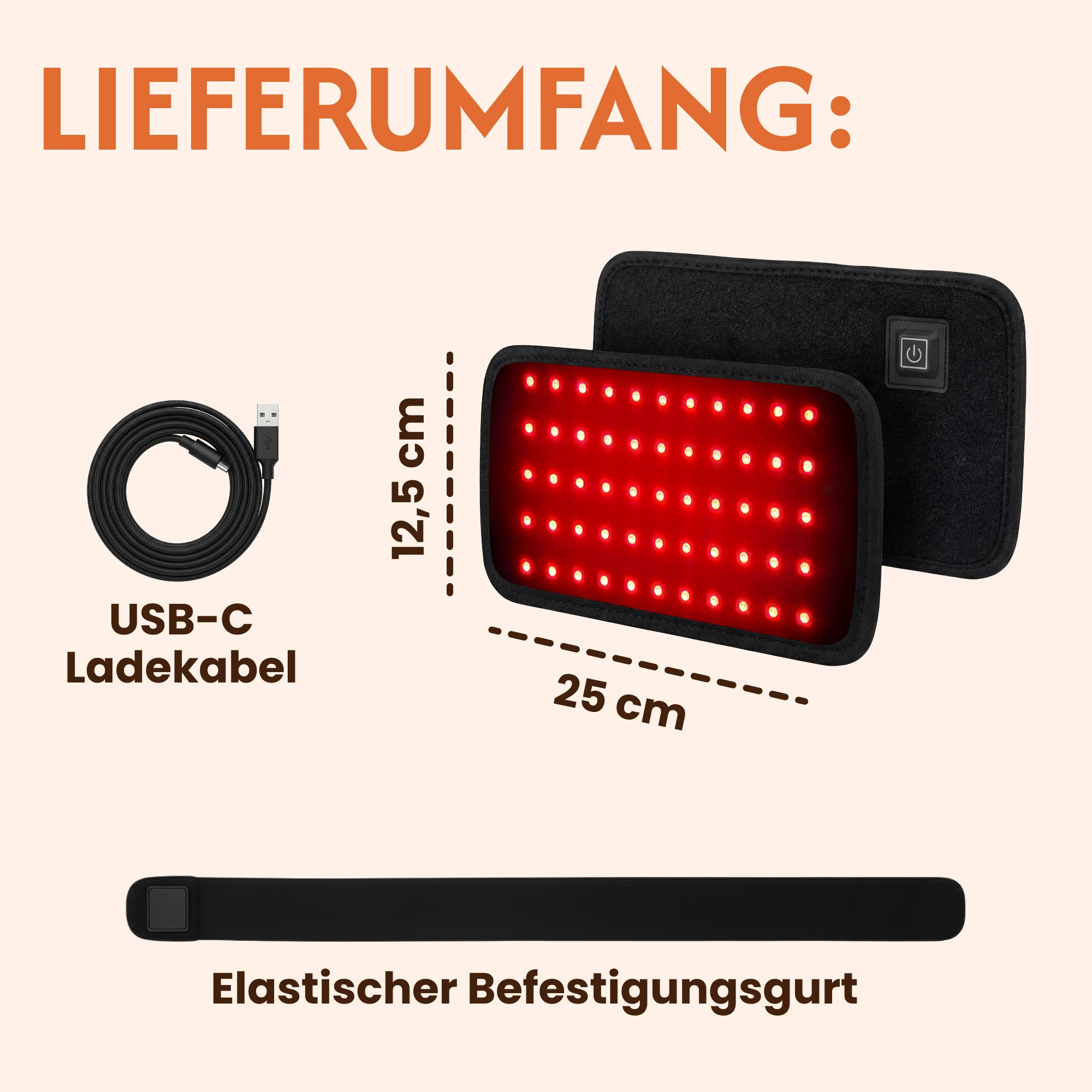 Die Matte kombiniert 660nm (sichtbares Rotlicht) und 850nm (Nahinfrarot). Beide Wellenlängen dringen tief ins Gewebe ein und sind wissenschaftlich erprobt.