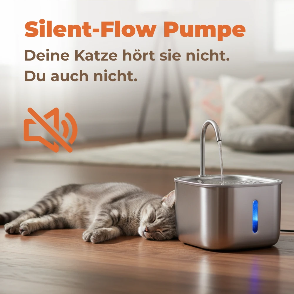 FellStern™ setzt auf Einladung statt Abschreckung. Viele Katzen meiden Trinkbrunnen, weil billige Pumpen brummen, vibrieren oder plötzlich laut anlaufen. Unsere Silent-Flow-Pumpe arbeitet nahezu geräuschlos. Kein Lärm, der irritiert. Kein Grund zur Vorsicht. Nur frisches Wasser und eine Katze, die entspannt trinkt.