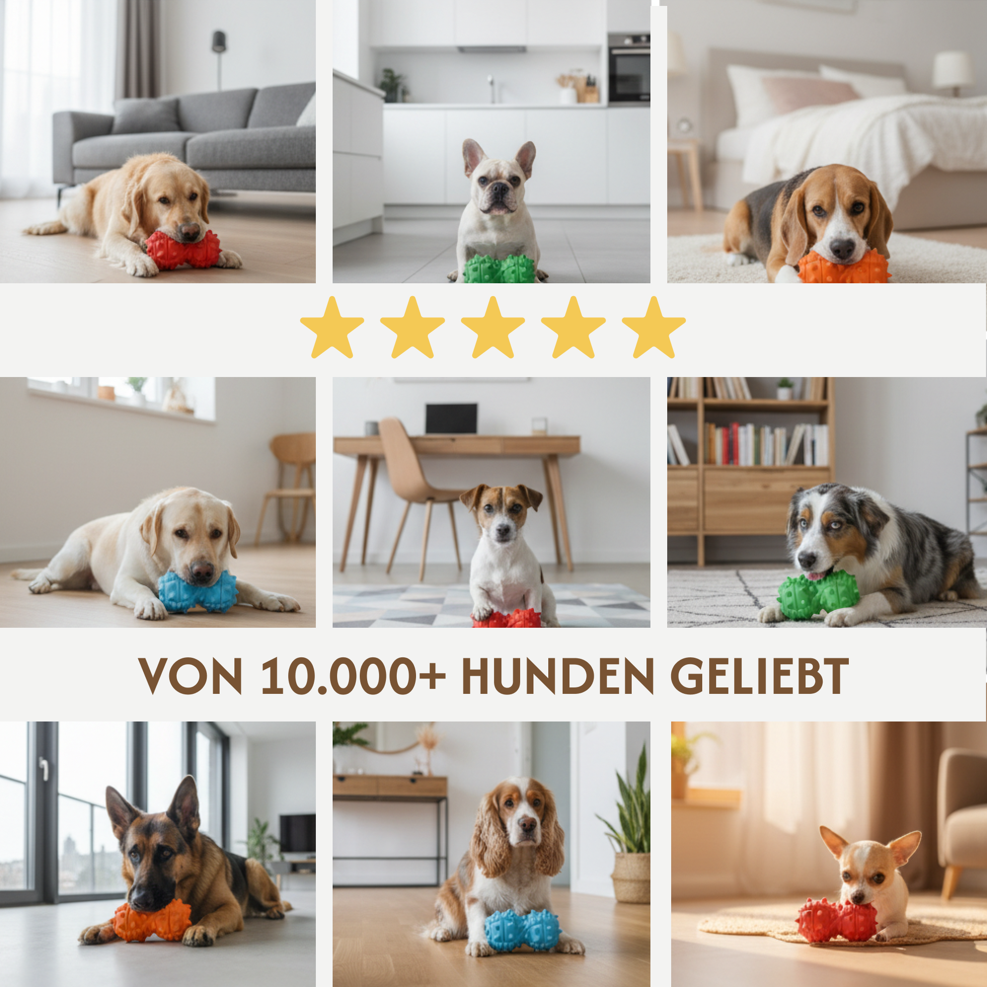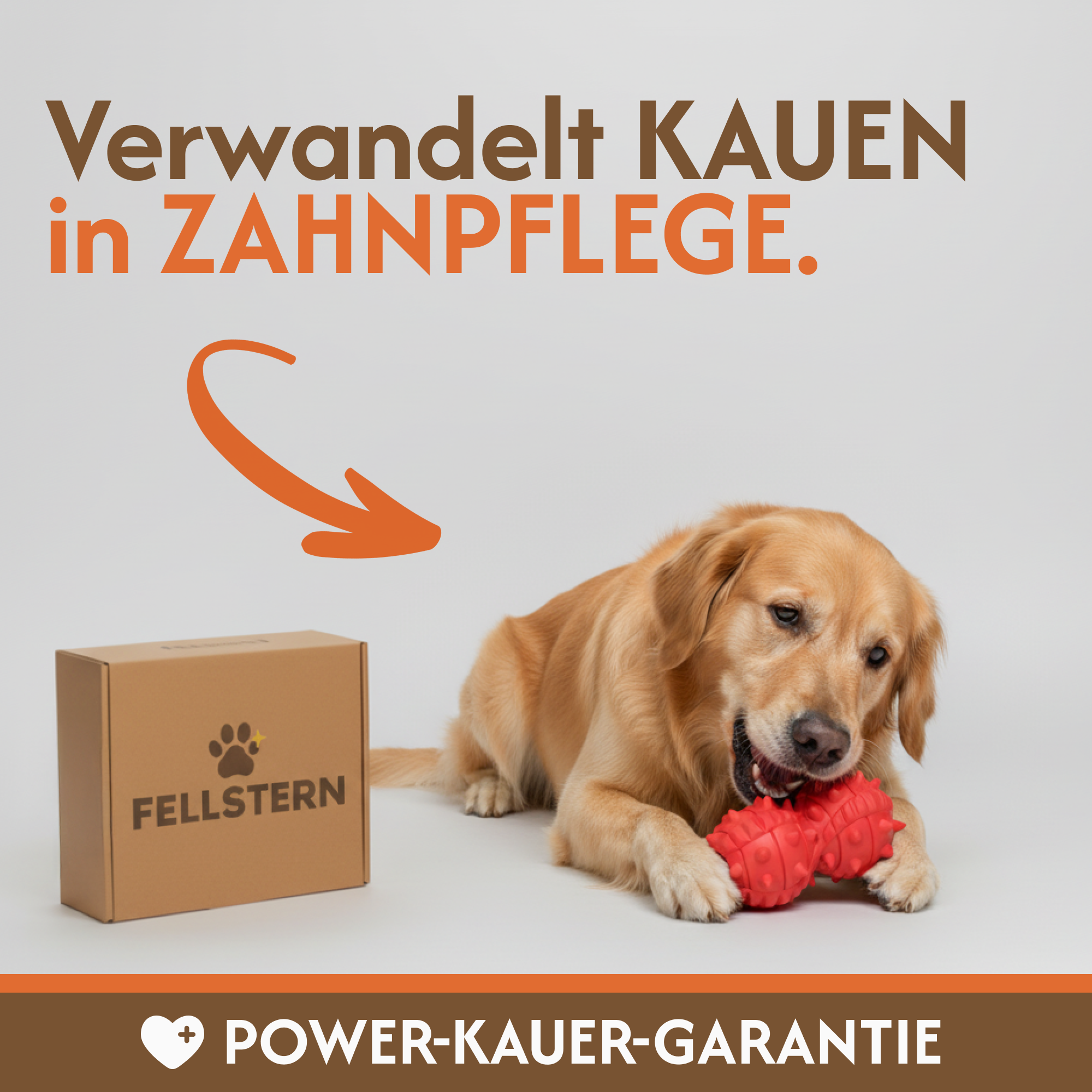 FellStern™ kombiniert Spielspaß mit effektiver Zahnpflege durch spezielle Noppen-Strukturen, die beim Kauen Plaque mechanisch entfernen. Hunderte zufriedene Kunden bestätigen sichtbare Verbesserungen bei Zahnstein und Mundgeruch.